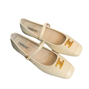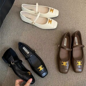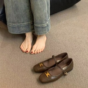 フラットな春と秋のフレンチスタイルのスクエアトゥメリージェーンシューズ、レディースシューズ、2025年新作、春のスカートに合う優しいイブニングシューズ