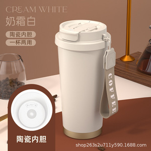 咖啡杯大容量316不锈钢保温杯高颜值便携车载双饮吸管杯礼品水杯