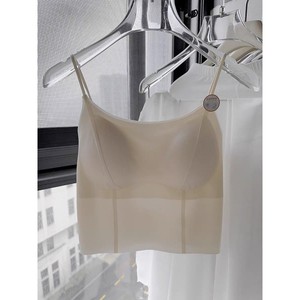 夏の新しい無地アイスシルクシームレスキャミソール、女性用、美しいバックデザイン、インナーレイヤー、胸パッド付き、インナーまたはアウターウェアに最適