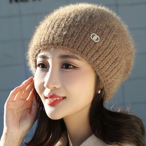 秋冬の大きい頭の周りにベルベットの厚いニットの毛糸の帽子の二重の保温のリスの絨毯の帽子の山の帽子