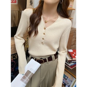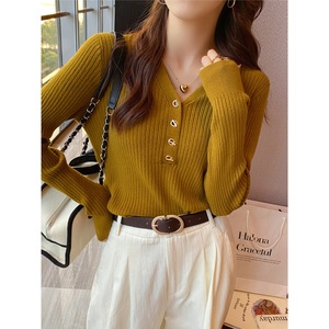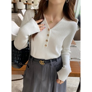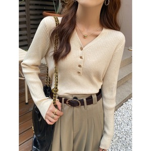 レディースニットセーター、香風、秋冬新作、Vネック、柔らかい素材、長袖、インナーにもアウターにも