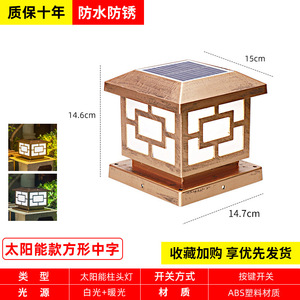 中字塑料款ABS户外太阳能柱头灯工程围挡防水批发