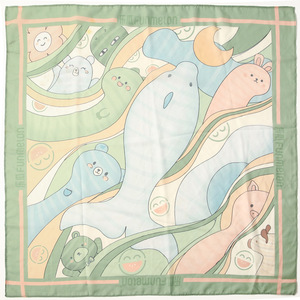 50/60cmシルクスカーフ、小判正方形スカーフ、ハンカチ、プリント、レトロ、文芸風、若者向け、イミテーションシルクスカーフ、ヘアアクセサリー、ヘアバンド