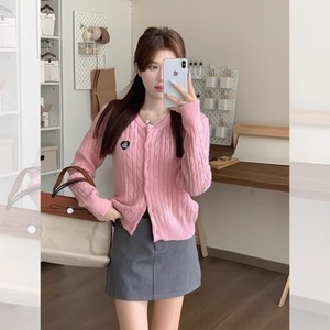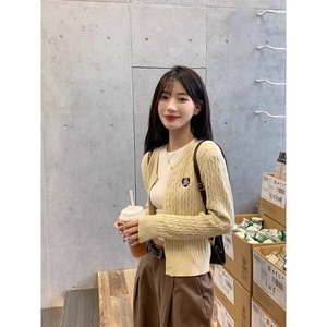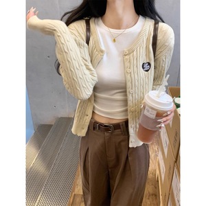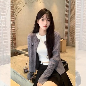 レディースニットカーディガン、秋の韓国風スリムフィット、個性的なセーター、麻模様のアウターウェア、ウールセーター