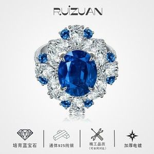 S925シルバー製人工育成サファイア卵型6カラット閉じた指輪、軽奢で高級感のあるクロスボーダーサプライ