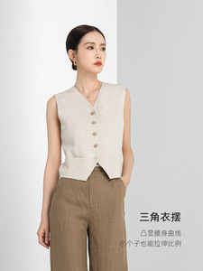 鑫閣の復古の古いお金の小さい背の短いタイプの馬甲2025夏の新型の天糸麻はやせているvネックの外出のベストを現します。