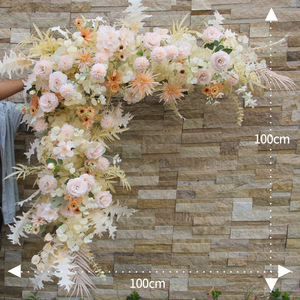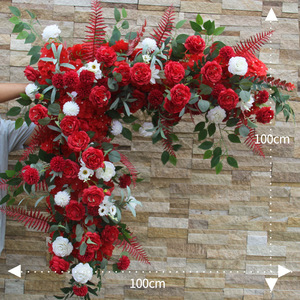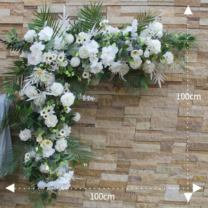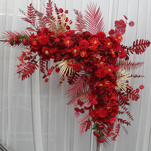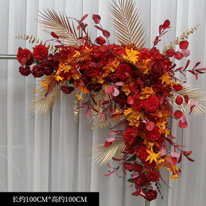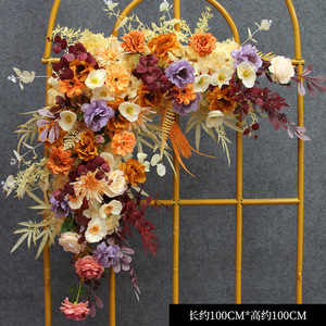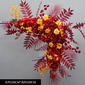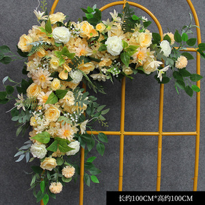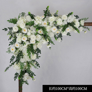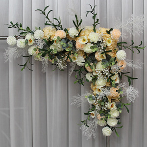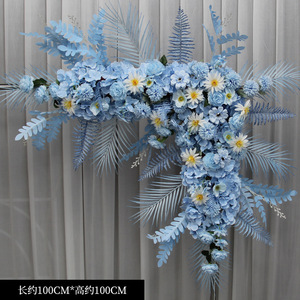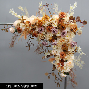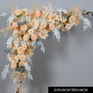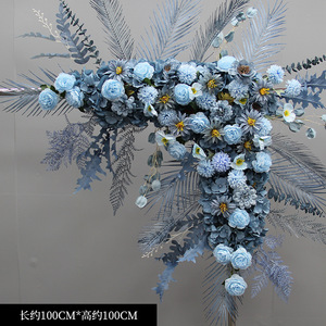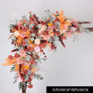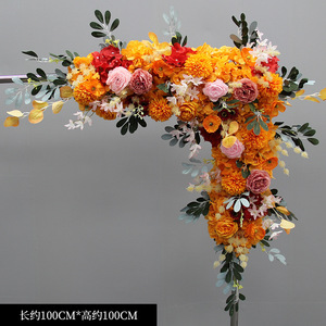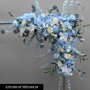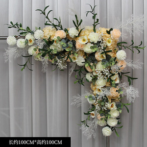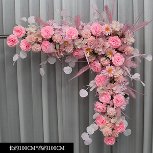 ウェディング三角花列花森系結婚式道案内花ボールアーチ木杭装飾花角花舞台背景花