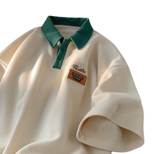 キャンパス風poloシャツ男半袖夏衝突色ワッフル上着日系学生百合シンプル有襟tシャツ