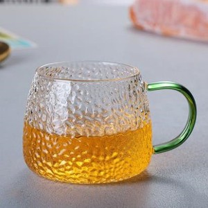ハンマーのガラスのコップはお茶を入れるコップを持っています。