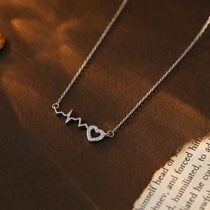 ガジュマルの木の下のs925銀のシンプルな心の愛のネックレスの女性ins風の軽い贅沢な心電図の彼女のプレゼントの鎖