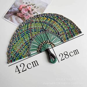 ベトナムわら扇子、手作り海草扇子、壁掛け扇子、カラフルな装飾扇子、夏用手回し扇子、わら扇子卸売