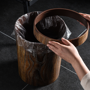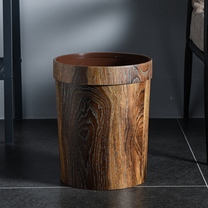 新中国式レトロ模造木目ゴミ箱家庭用創意リビングキッチントイレ紙かごプラスチック圧輪王涛