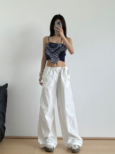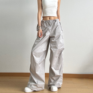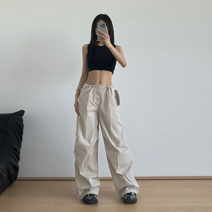 アメリカ式ギャル風工装ズボン女性ストレート広脚ズボンジャズダンスズボンしわ傘兵ズボン