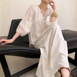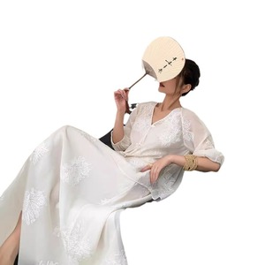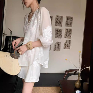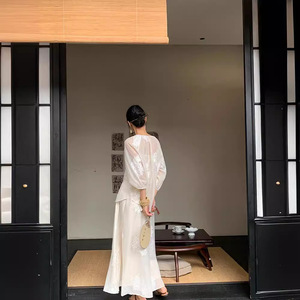 2025 夏の新茶スタイルの衣装オーガンザ新中国風のファッション新鮮な旅行スーツドレス