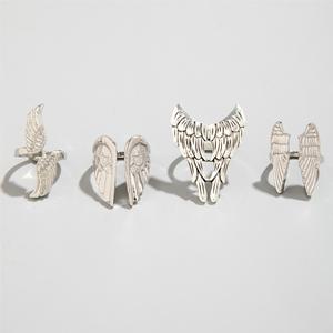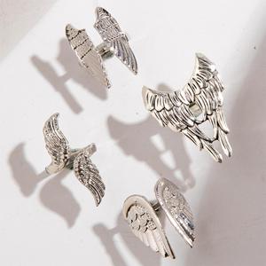 クロスボーダーのパンク風の幾何学的な天使の翼の指輪の復古的な羽の翼の多関節の指輪の4つのセットの女性