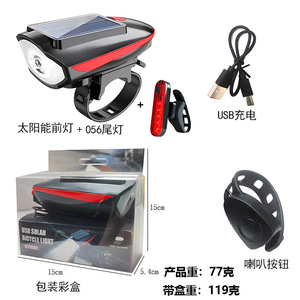 太陽エネルギーの山地の自転車の明かりの強い光の夜は自転車に乗ります。