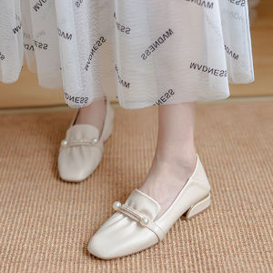 イブニングブリーズ シングルシューズ レディース ミディアムヒール レディースシューズ 2025 新しいスタイル スリッポン スカート付き 太いヒール ソフトソール 足が疲れない Doudou レディースシューズ