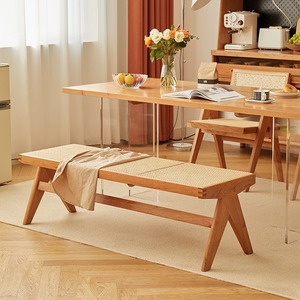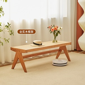 実木藤編ベンチチャンディーガル椅子中古ベンチ日本式デザイナーレトロ家庭用民宿靴交換ベンチ