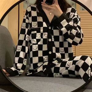韓国版の甘いネットは春と秋の長袖のパジャマを生放送します。