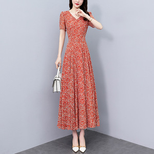 大きいサイズの気質は腰を収めてやせています。シフォンの花のワンピースです。