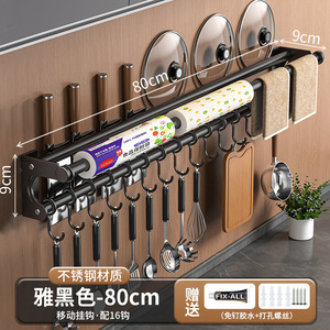 多機能キッチンフックホルダー穴なし壁掛け式壁刃ホルダーステンレス鍋蓋調理器具ラップラック