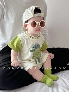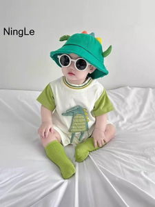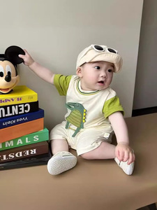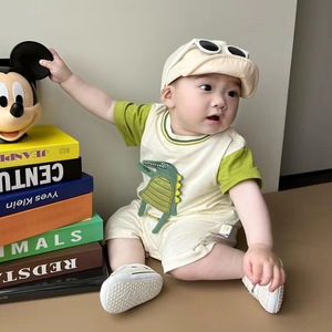 夏の男の赤ちゃんの連体の服の2024新生児の漫画の恐竜の半袖の服の夏服の薄いタイプの服は服を登ります。