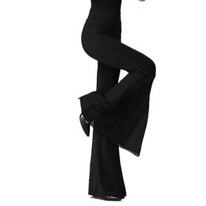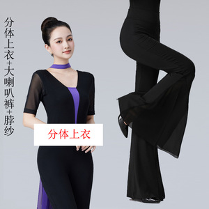 黒と紫のワンピースミッドスリーブトップ + 純黒のビッグベルボトムパンツ (ミルクシルクパンツ) + ネックガーゼ
