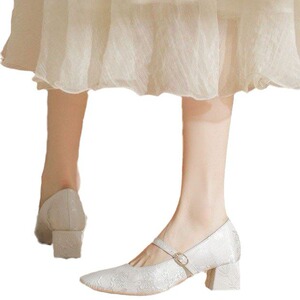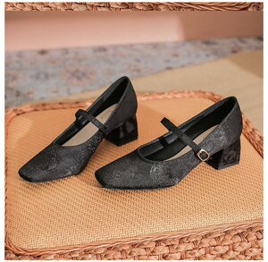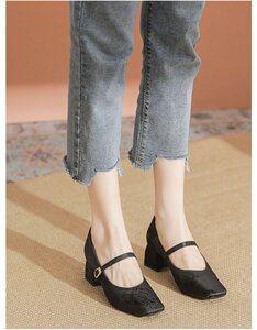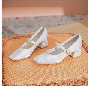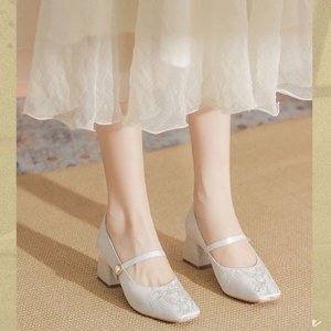 2024 新しいハイヒールの女性の靴中国風の新しい中国風の真珠ストラップファッション厚いヒールメリージェーンの靴女性のための