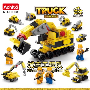 多变城市工程队系列益智拼装挖掘机吊车积木玩具厂家批发