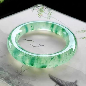 珪岩翡翠ファットラウンドバー グリーンフラワー内径56mm