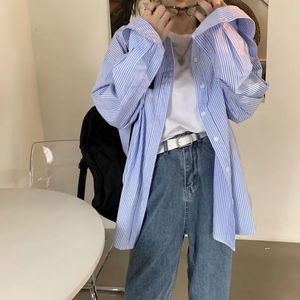 ストライプの長袖のシャツの女性の春秋の服の新型の日焼け止めのゆったりしたbfの風のゆったりしている中の長いストライプの百合のコートの女性