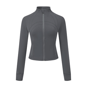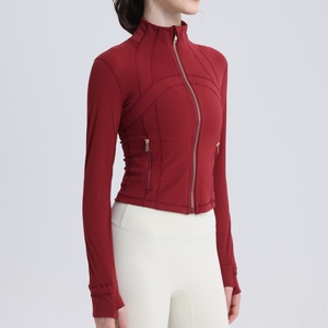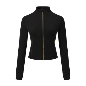 ショートゴールドジッパーlu春両面起毛デフィントップスリムフィットストレッチ速乾スタンドカラージャケットヨガジャケット