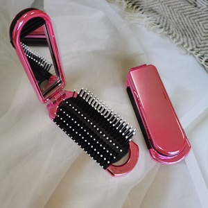 ピンクの折りたたみミラーコームベーシックモデル