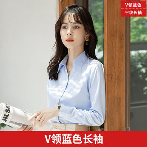 白いシャツの女性の長袖と春の新商品の作業服の正装の工装の半袖の黒と青の職業の服の女性の白いシャツ
