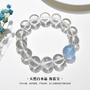 天然ホワイトクリスタルブレスレット アクアマリントップストーンブレスレット 卸売ライブ供給 男女兼用