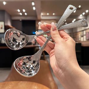 ステンレススプーンのスプーンセットの高颜値ハンマーの長い柄の火鍋スプーンの家庭用台所のスプーンはロゴを印刷することができます。