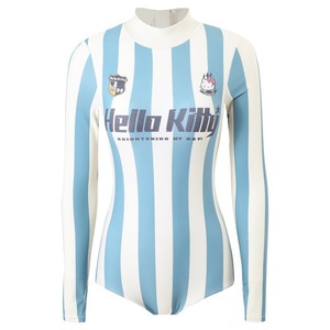 純粋な欲の連体の水着の女性の長袖の保守的な小さい胸は集まって肉を遮って痩せています。