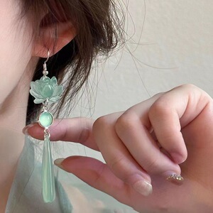 新中国式蓮花超仙長型水滴イヤリング女2024新国風漢服古風耳フックイヤリング女