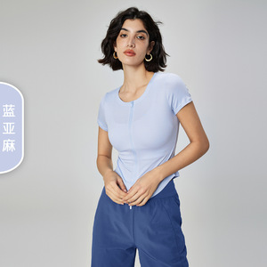 モーダル裸感修身スポーツtシャツ女性丸首ファスナーヨガ服カジュアル小蛮腰フィットネス半袖夏