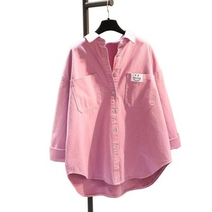 秋の新型シャツの女性の長袖は簡単です。韓国風の純色がゆったりしています。