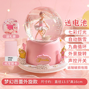 クリスタルボール音楽オルゴール女の子プリンセス子供誕生日プレゼント年越しガラスボール回転可能なトロイの木馬置物