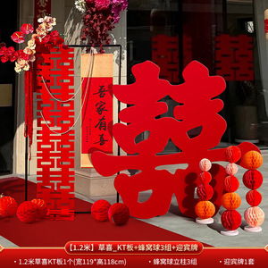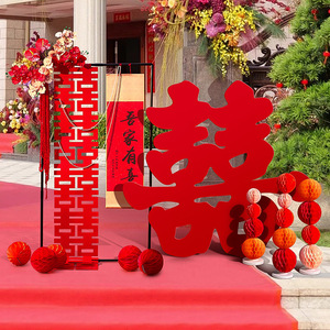 結婚の立体喜字kt板の置物のウェディングルームのホテルの入り口の着地の双字は結婚式の農村の装飾を配置します。
