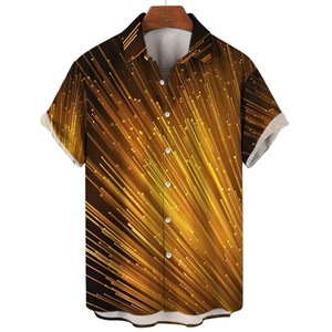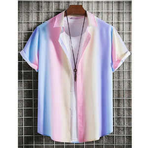 2024シンプルグラデーションハワイシャツメンズカラーメンズシャツ3dプリントカジュアル半袖ビーチパーティー