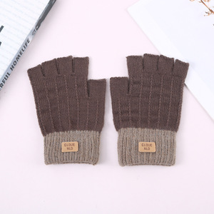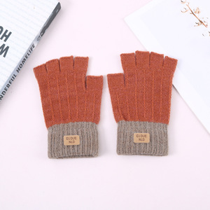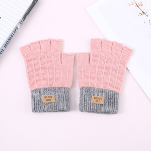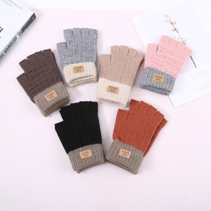 サイクリング用ハーフフィンガーグローブ 冬用防寒保温グローブ ウールニット 指なしグローブ 学生用 厚手 レディースモデル 卸売