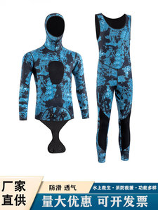 プロの狩猟魚服3mm迷彩潜水服は別体に帽子を持っています。