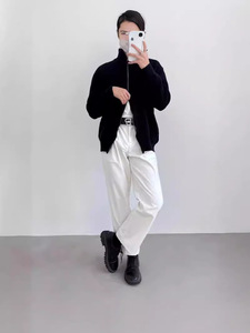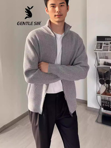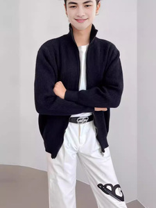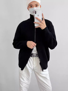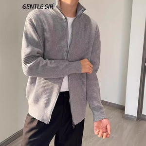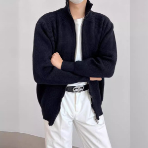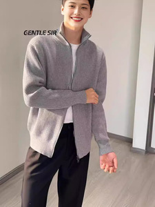 ジッパーニットカーディガンジャケット秋と冬厚みのあるスタイル春アウタースタンドカラーレイジータートルネックセーターメンズカレッジスタイル