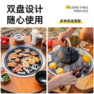 炉付きティーテーブル、折りたたみ式小型ラウンドテーブル、家庭用暖房火鉢、ポータブルキャンプバーベキューテーブル、バーベキューストーブ