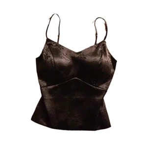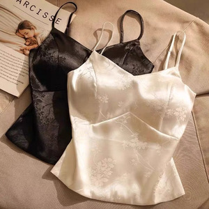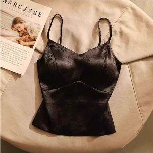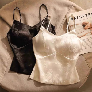 通気性のあるサテンジャカード美背中下着デザイン、ブラジャーなし、胸パッド付き、スリムキャミソールトップ