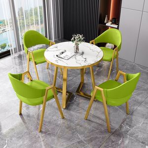 ゴールドイミテーションホワイト大理石+フルーツグリーンレザーチェア