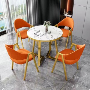 ゴールドイミテーションホワイト大理石+オレンジ布椅子